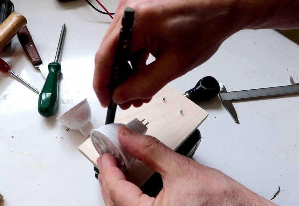 I wanted to attach the bulb to the plywood. I drew the outline of the bulb