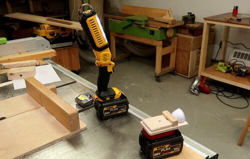 The reason I built this thing is that I use the DeWalt work lights to fill in some dark areas here and there while filming, and having another similar light could be handy. The more focused beam will be better some of the time, but less useful at other times.
