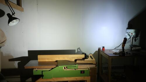 the spot on the right. The DeWalt work light has a much wider beam, so