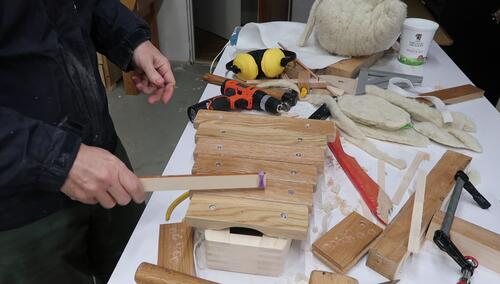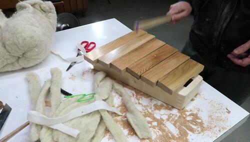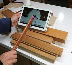Some leftover floor boards had a nice sound when struck, so I figure those