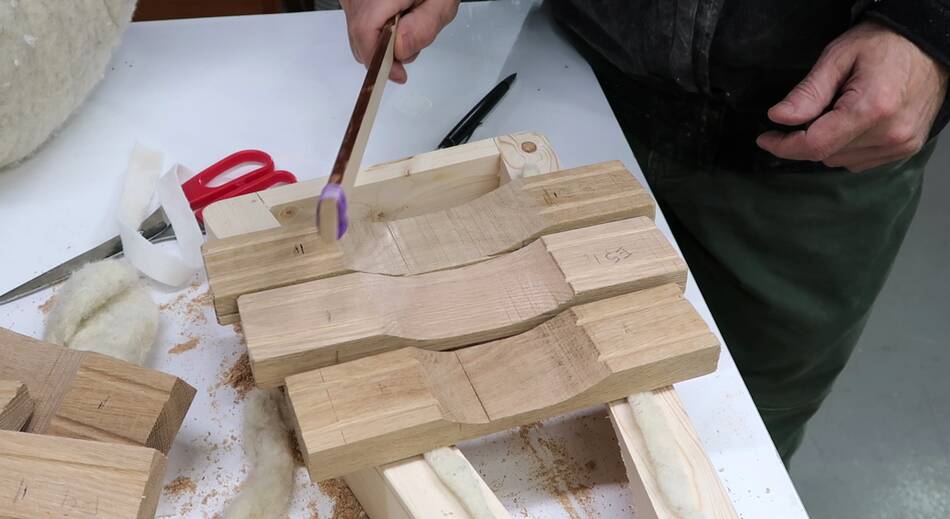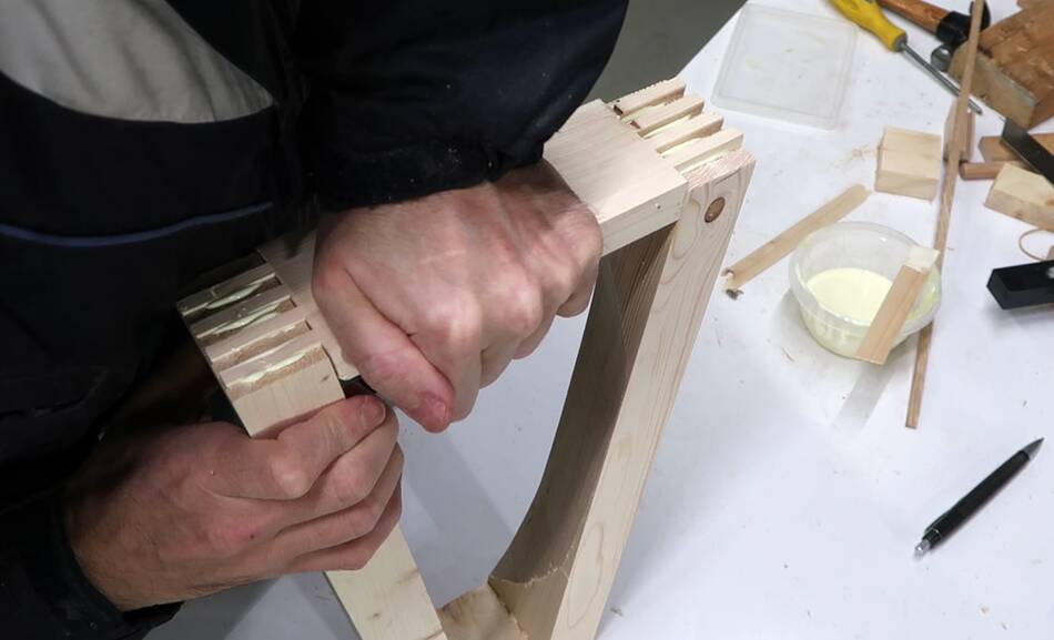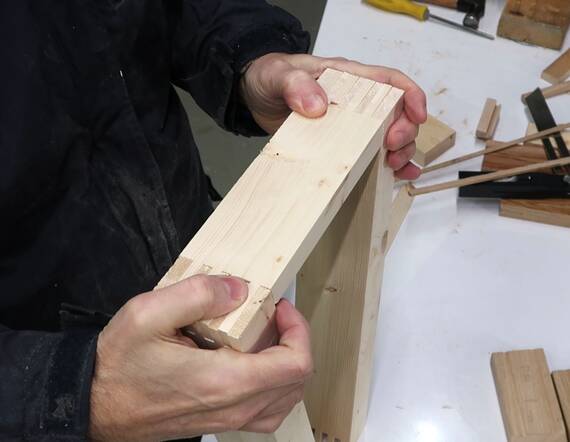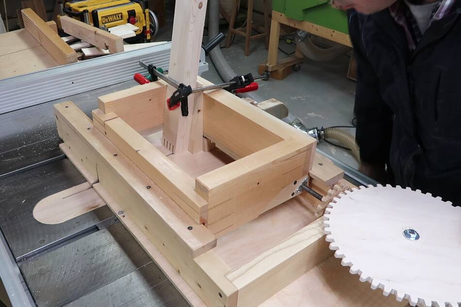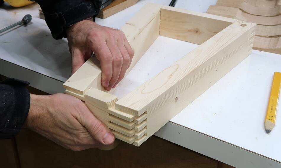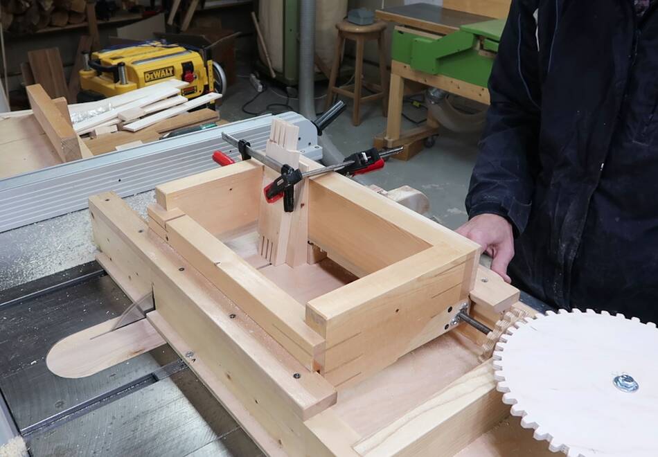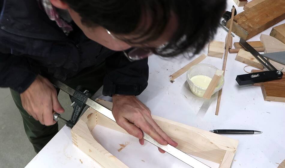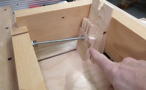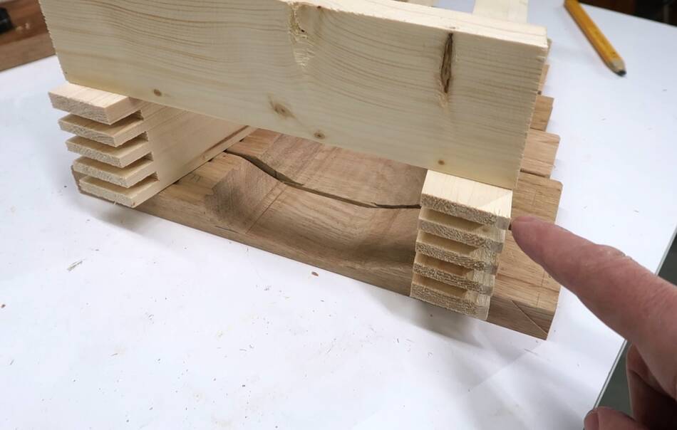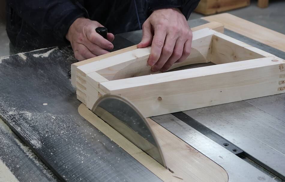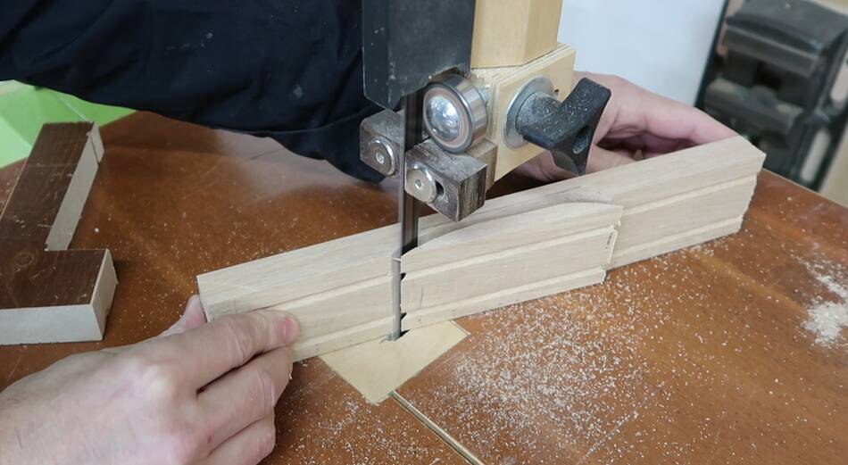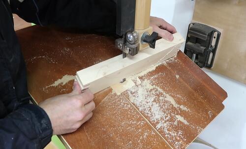 of the inside bottom of the wider side pieces on the bandsaw. I made