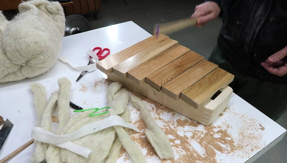 thin felt, and thick wool felt from a wool cushion that we accidentally