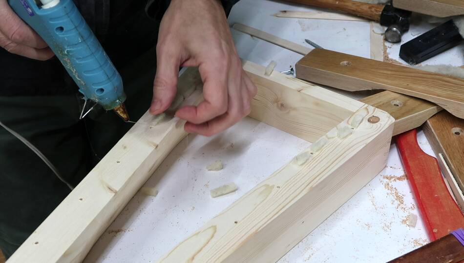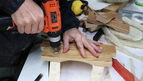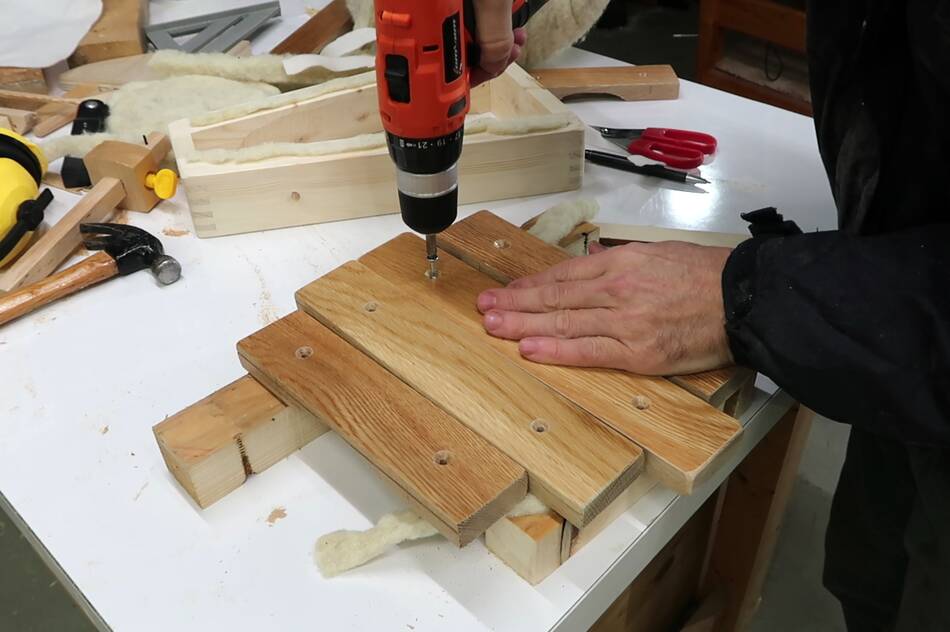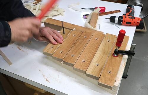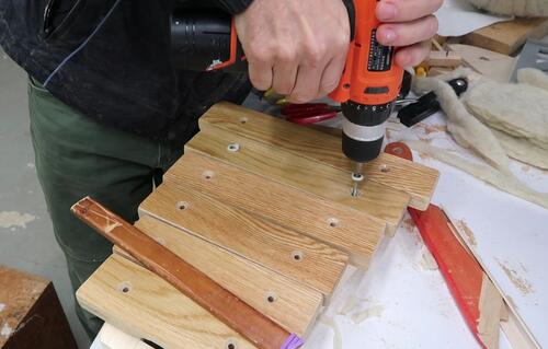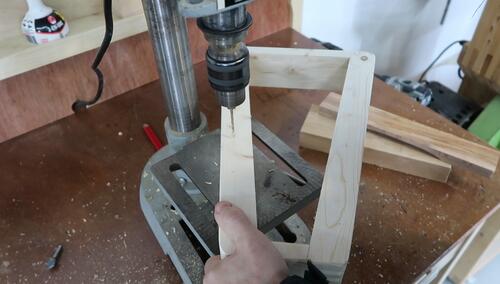 Then drilling pilot holes for the screws. Pilot holes weren't strictly necessary