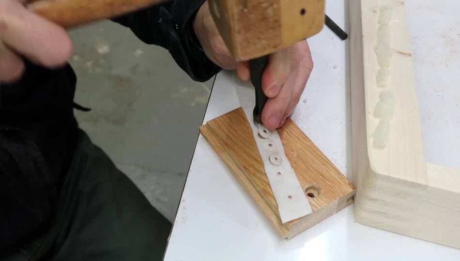 hole and whacked it with a push stick to mark the mounting hole locations.