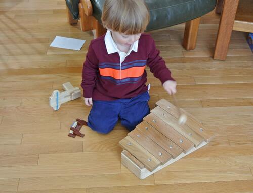 A few weeks later at Christmas. The xylophone toy got lots of bashin on, so far