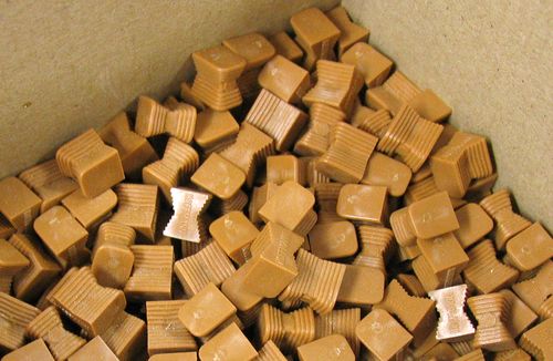 The little plastic dovetail wedges are tapped in with a hammer, either flush, or sunk below the surface. Normally, glue is applied before the dovetail is driven in, though the joint in this photo was just a test joint without any glue.