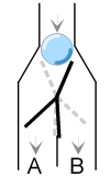 exiting the fork, flips the Y, causing the next marble to take the other path.