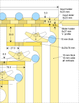 Dimensions for the sliders and horizontal strips with holes in them.