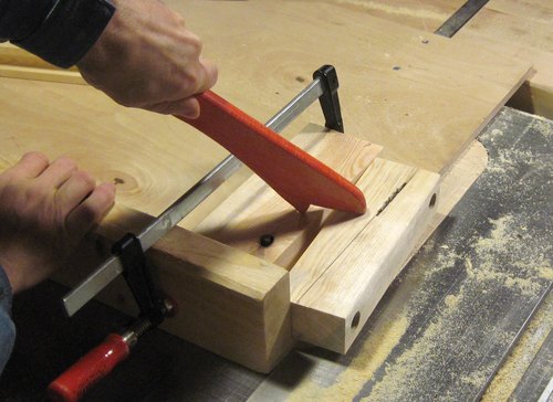 I clamped a heavy block of oak to my table saw fence to keep the block in