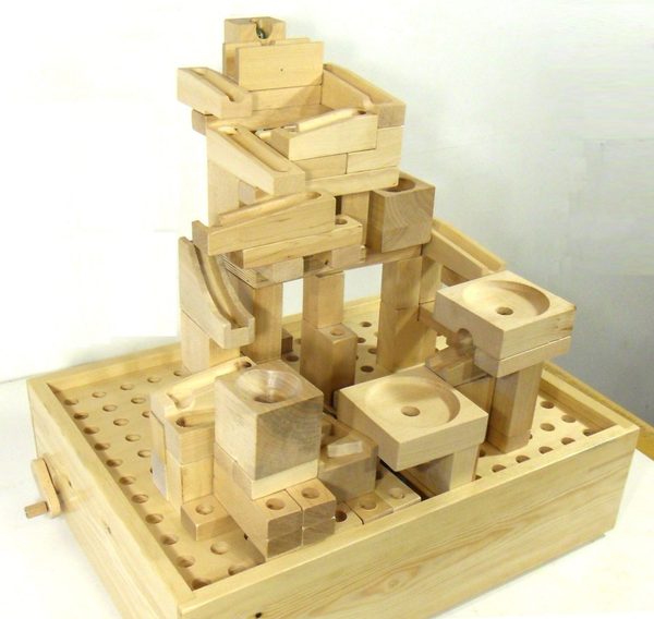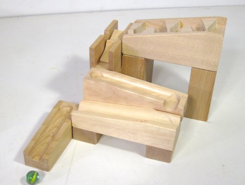 The blocks on the right side in the box are blocks for building up the structure. The block set is all about the ramps, but the ramps and other marble handling elements need to be supported at different heights and positions. So there are a lot of blocks whose sole purpose is to build up the "structure" to support the track segments.