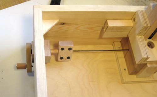 The crankshaft connects to a hand-crank on the outside of the box. It was tempting