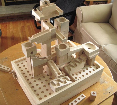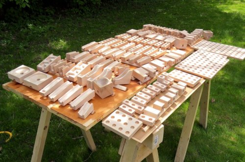 Hi Matthias, I just wanted to thank you for making the modular marble machine plans available for purchase. As this was my first real woodworking project, it was a monumental undertaking! I learned so much about woodworking and I would have been totally out of my depth if I didn't have access to a mill with digital readouts (which made the precision work a bit more reasonable) I think I put in just over 100 hours and I feel like I have created a family heirloom. I've spent lots of quality time with my kids playing with the marble blocks. I've had lots of people say that they would buy one if I wanted to make another... I tell them I'd love to, but I charge $50 per hour! No takers yet.