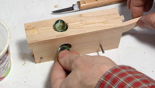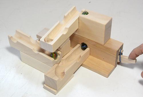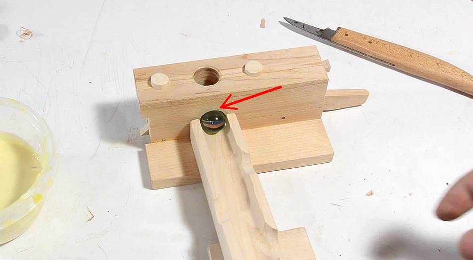 The marble entry hole is drilled at an 8-degree angle so that marbles