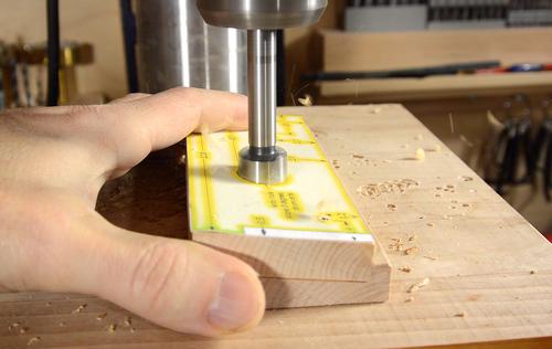 Leaving this slight bridge prevents chipout as the hole is drilled and also prevents the drill from wandering to the side. If you are using one of those dreadful spade bits, you may want to make the middle layer a bit wider on that side because spade bits are very messy at drilling.