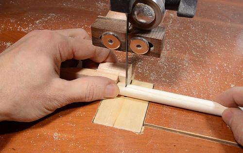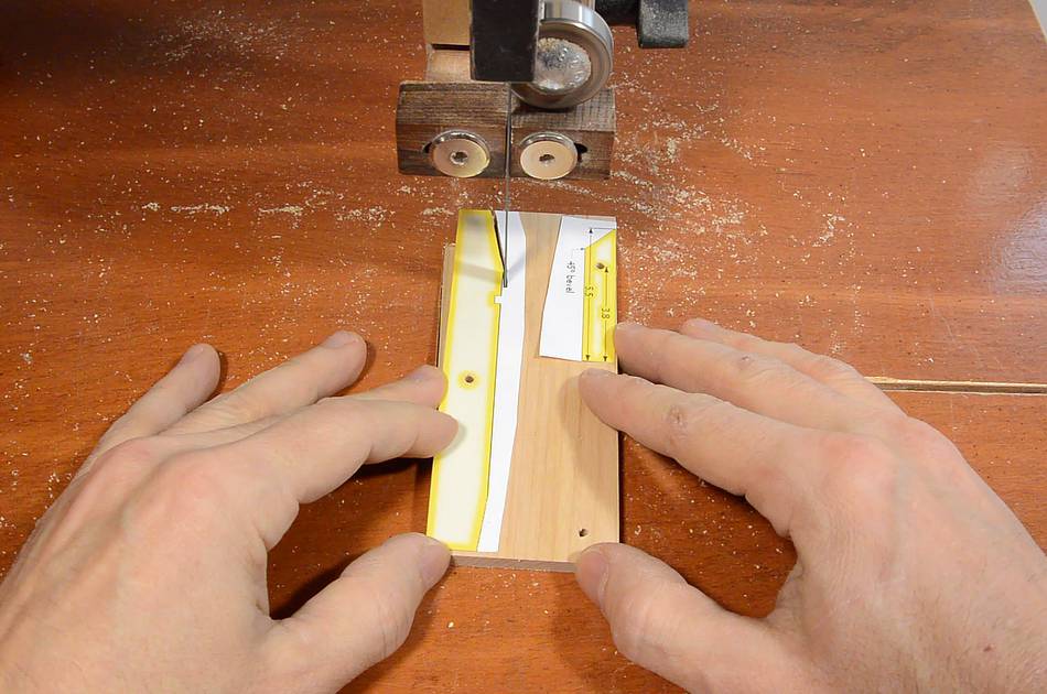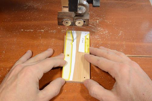 is the thin middle layer, which I'm cutting out on the bandsaw at left.