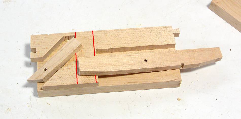 There is also a notch that needs to be cut off one end. The templates are very handy for avoiding measuring errors. When I built my earlier version, that notch tripped me up because I got mixed up measuring to the notch vs. to the end of the piece of wood.