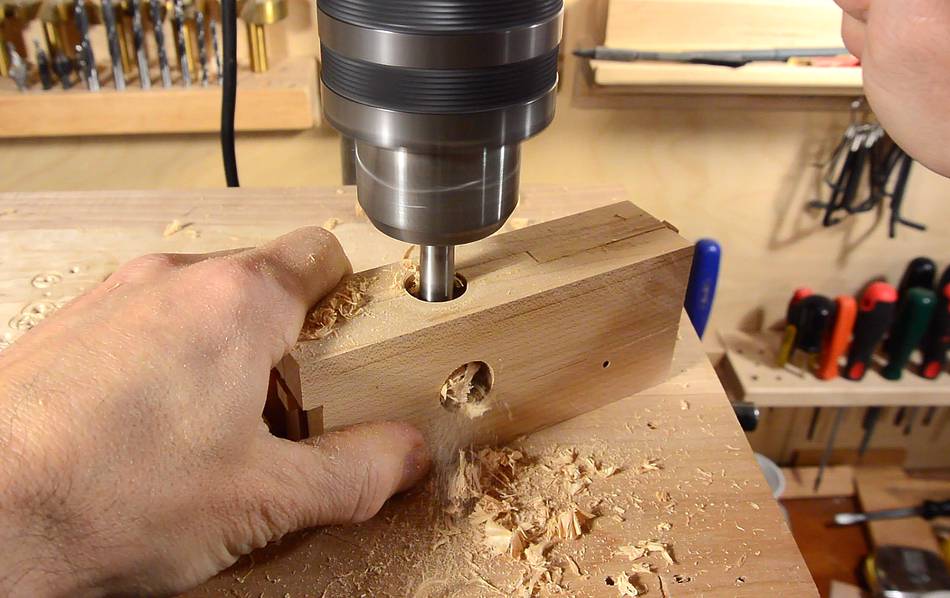I recommend using a closed grain hardwood, such as maple, birch, cherry or mahogany. Avoid woods with strong ring patterns such as oak or ash or hickory, as the grain may pull the drill off to the side a bit.