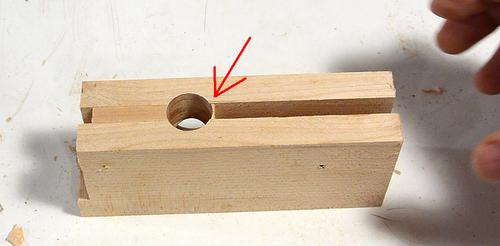 will roll into the hole. I cut a wedge shaped piece of wood to support