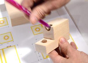 The pegs need to fit loosely into 1/2" holes on the bottoms of the blocks.