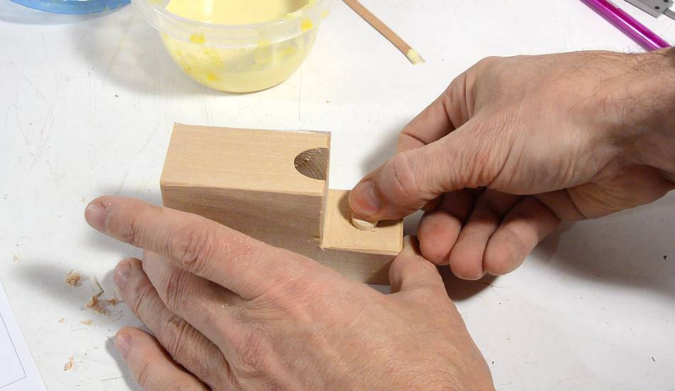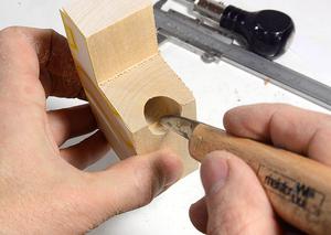 I hadn't drilled quite deep enough, so there was a bit of a ledge left between the two holes. I cut that out with a carving knife.