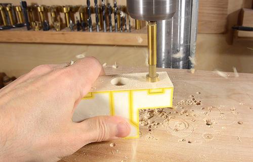 Drilling the holes for the alignment pegs. I'm using a 15/32" drill,
