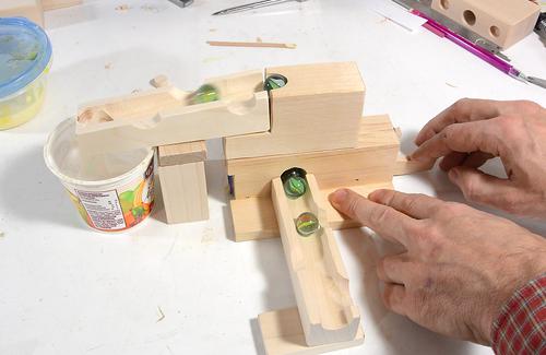 Testing the pump with a ramp. The marble won't quite roll in, so I need to carve