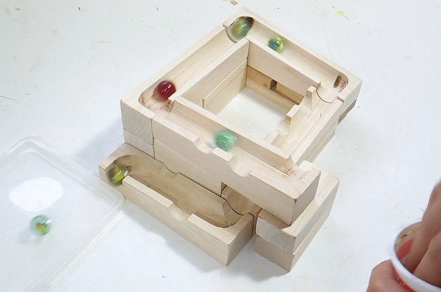 A problem with marble tracks like this is that the impact of the marbles gradually