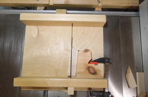 Then two more cuts with the sled to cut out a notch.