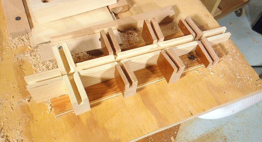A neat trick for cutting lots of short dowel pieces is to make a piece of