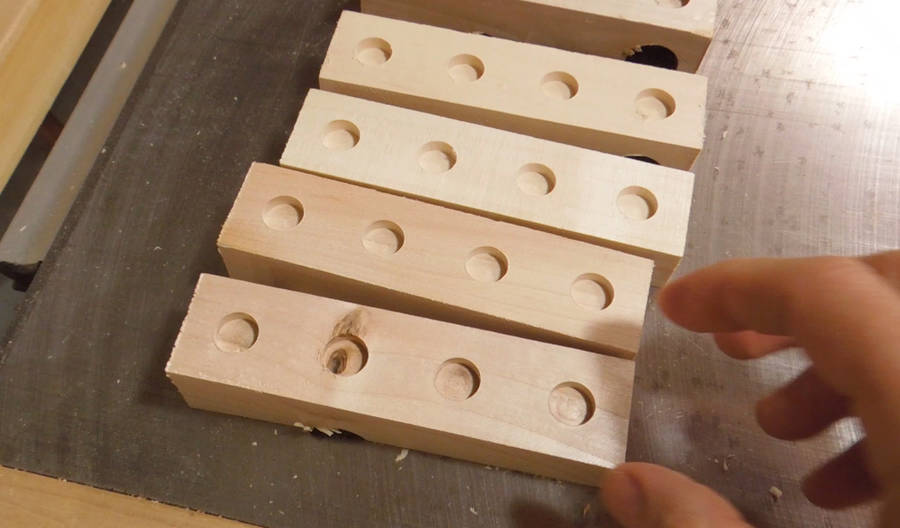 custom sized dowels for the buttons.
