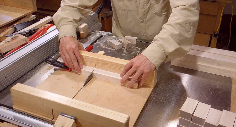 I cut a whole lot of pieces to length on my table saw sled.