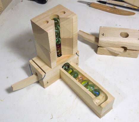 Testing by running lots of marbles down the tracks. So far, so good.