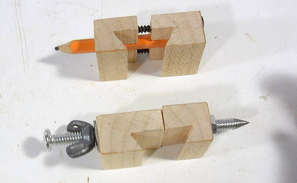 Tightening the screws pulls the block tighter onto the rail, which presses the pencil against the rail to lock it in place.