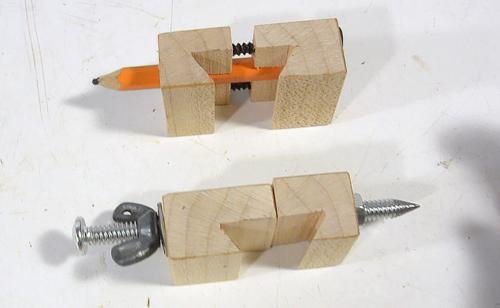 Two brackets clamp to this dovetail rail, one with a pencil, the other with a point.