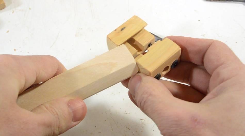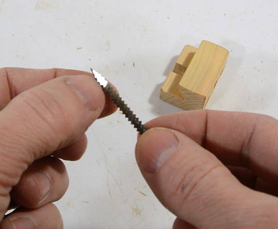I also ground the tip of a screw flat so I could use it to pre-cut screw threads in the blocks. This to avoid splitting the block when I put the screws in.