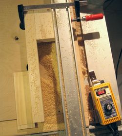 This was before I built my router table, so I just mounted the router on my right side table saw extension, and made a temporary fence, offset from the saw's fence, so that the wood chips would have somewhere to go.