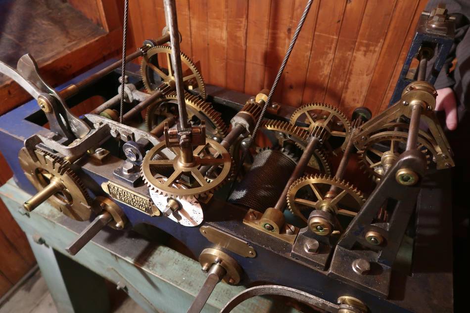 The weight shaft used to extend to the ground floor, but the restaurant that's there now didn't want the weight coming through the restaurant, so the shaft was shortened. The clock now no longer runs a whole week on a single winding.