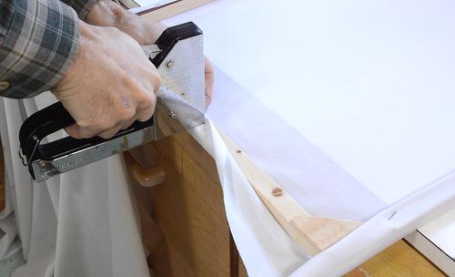 I then stapled some white fabric to the screen, being careful to select
