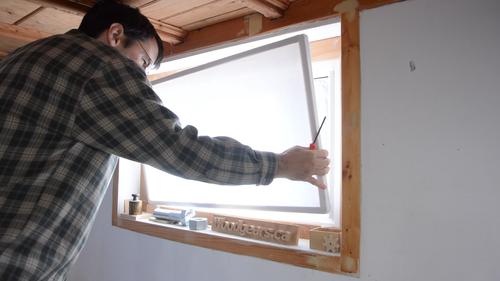 Putting the screen in the window. On the bottom, it just rests on two