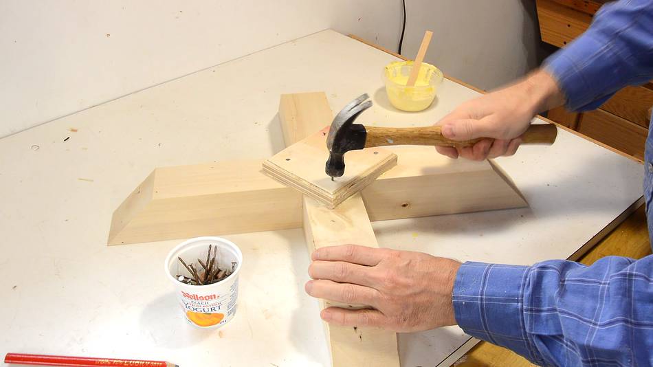 I then glued and nailed a piece of plywood over the intersection as reinforcement