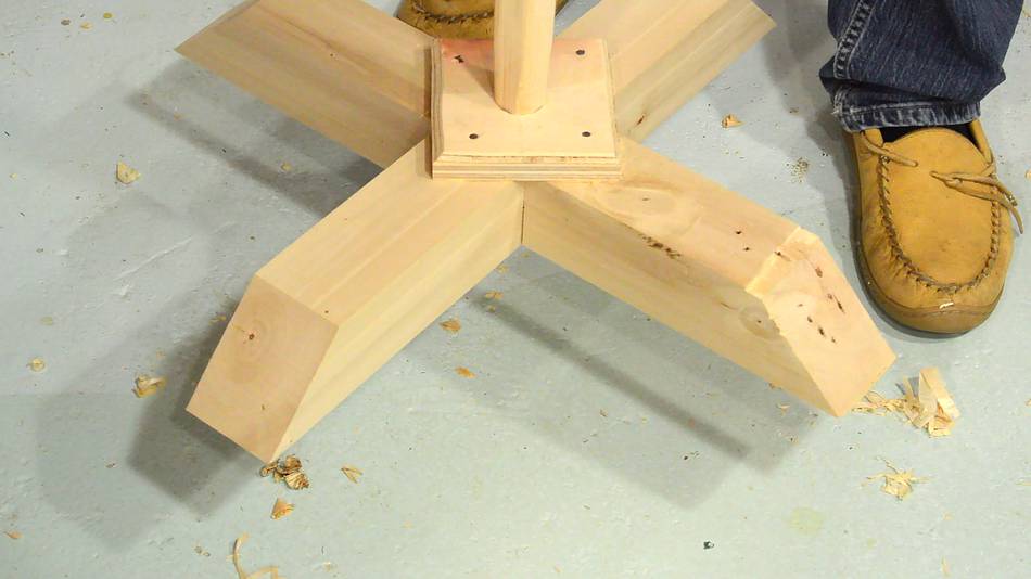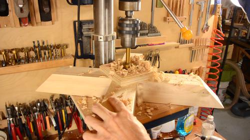 round with a spokeshave. I drilled another 1 1/4" hole in a scrap of plywood to