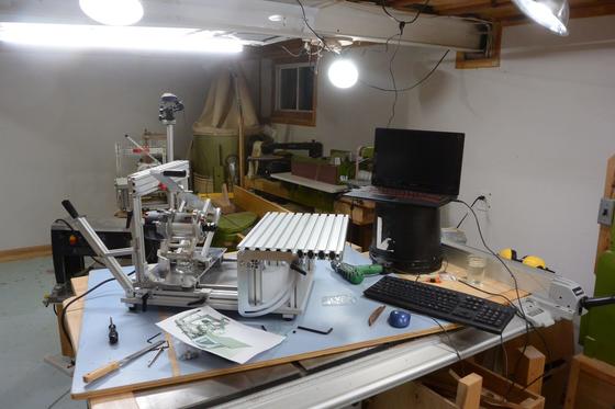 I set up my laptop computer in my workshop, with a webcam on a tripod, another webcam overhead,