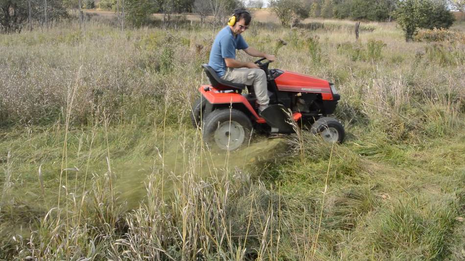 time to time, open space turns into bush. So I bought a used lawn tractor and started