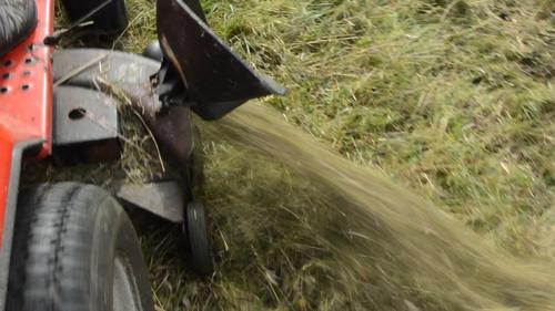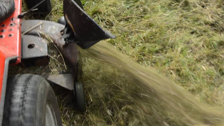 The lawn mower chewing through the tall grass, with a jet of grass and debris shooting out the side, very satisfying. Of course, for grass this tall, what you really need is a brush hog. The lawn mower doesn't get all of it, so I need to take many passes over some of it.