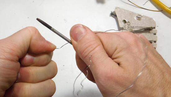 of the wire. I made a prong out of copper wire to connect to parts of the wire