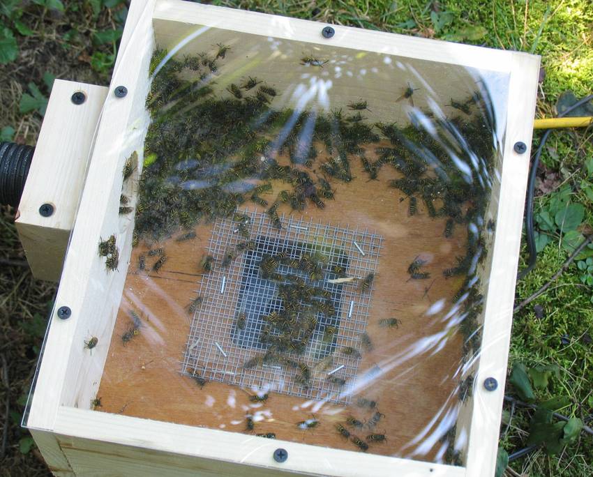 Wasps that are just leaving tend to crawl away from the suction before taking off, so the system only works on those returning to the nest.