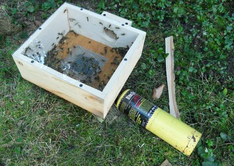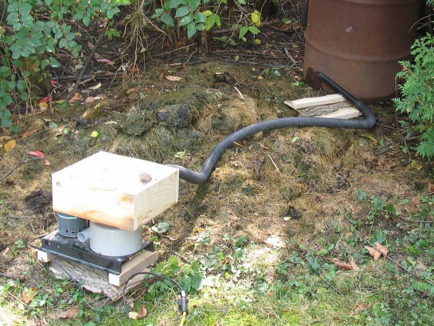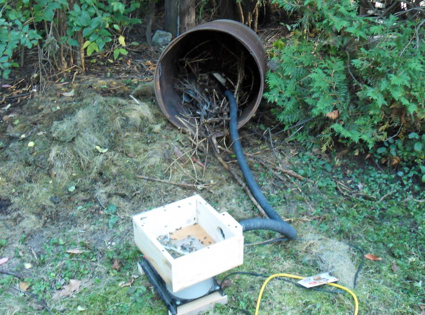 I also discovered that the screen I used at the bottom of the box was too coarse and some wasps made it through. Those all got ground up in the blower, and I had to take it all apart to clean it up. Ground up wasps smell really bad!