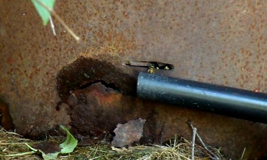 The wasp nest was in the bottom of a steel barrel in my back yard.
