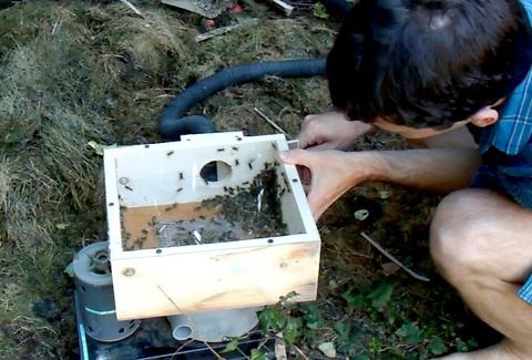 The wasp sucking machine is just a wooden box that fits on top of the intake of