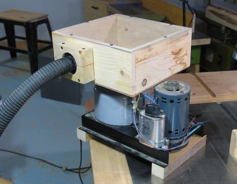 Air gets sucked out of the bottom of the box through a screen. A shop vac hose attaches